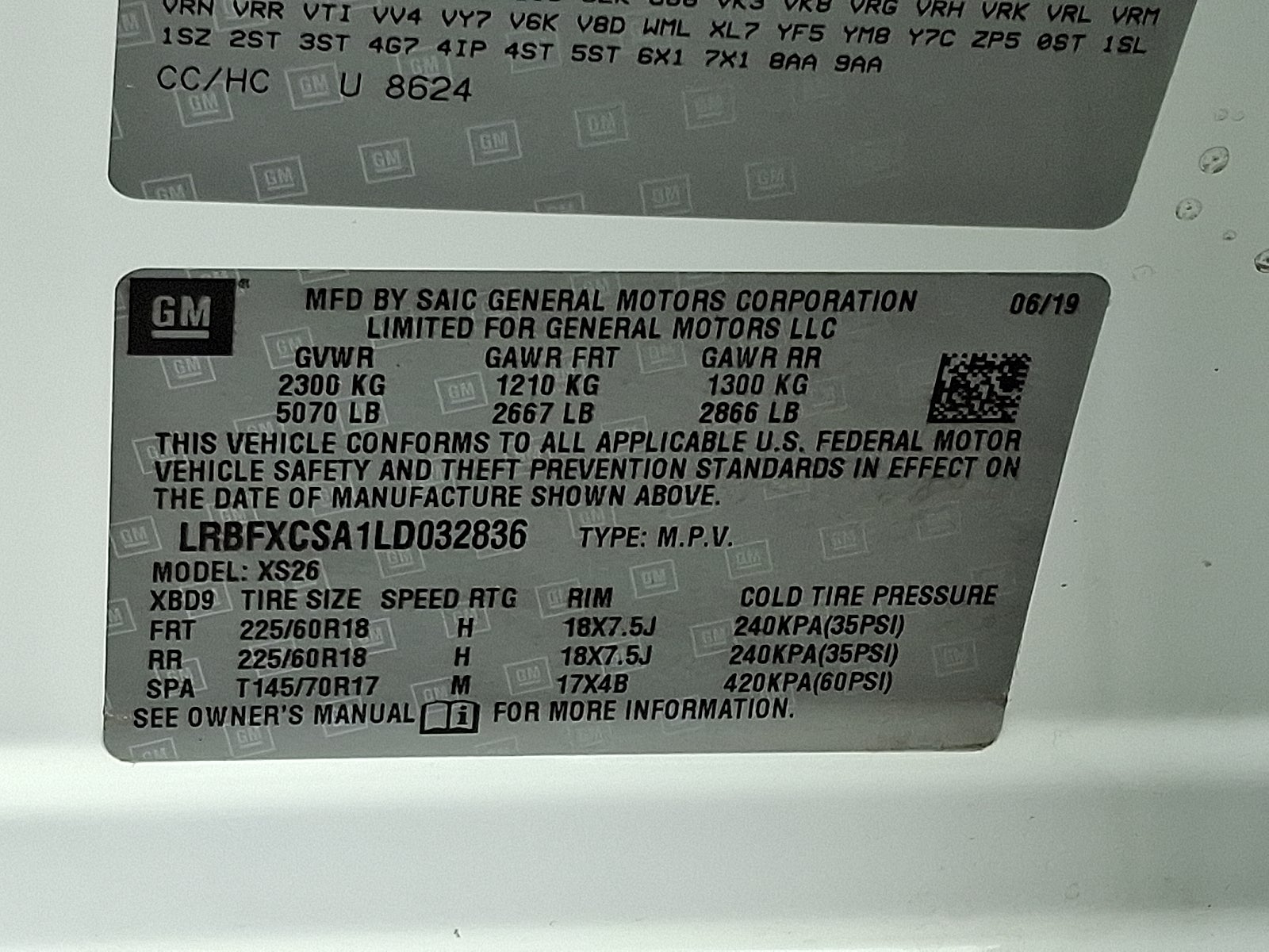 - GVWR, 5070 lbs (2300 kg) (FWD models only.)