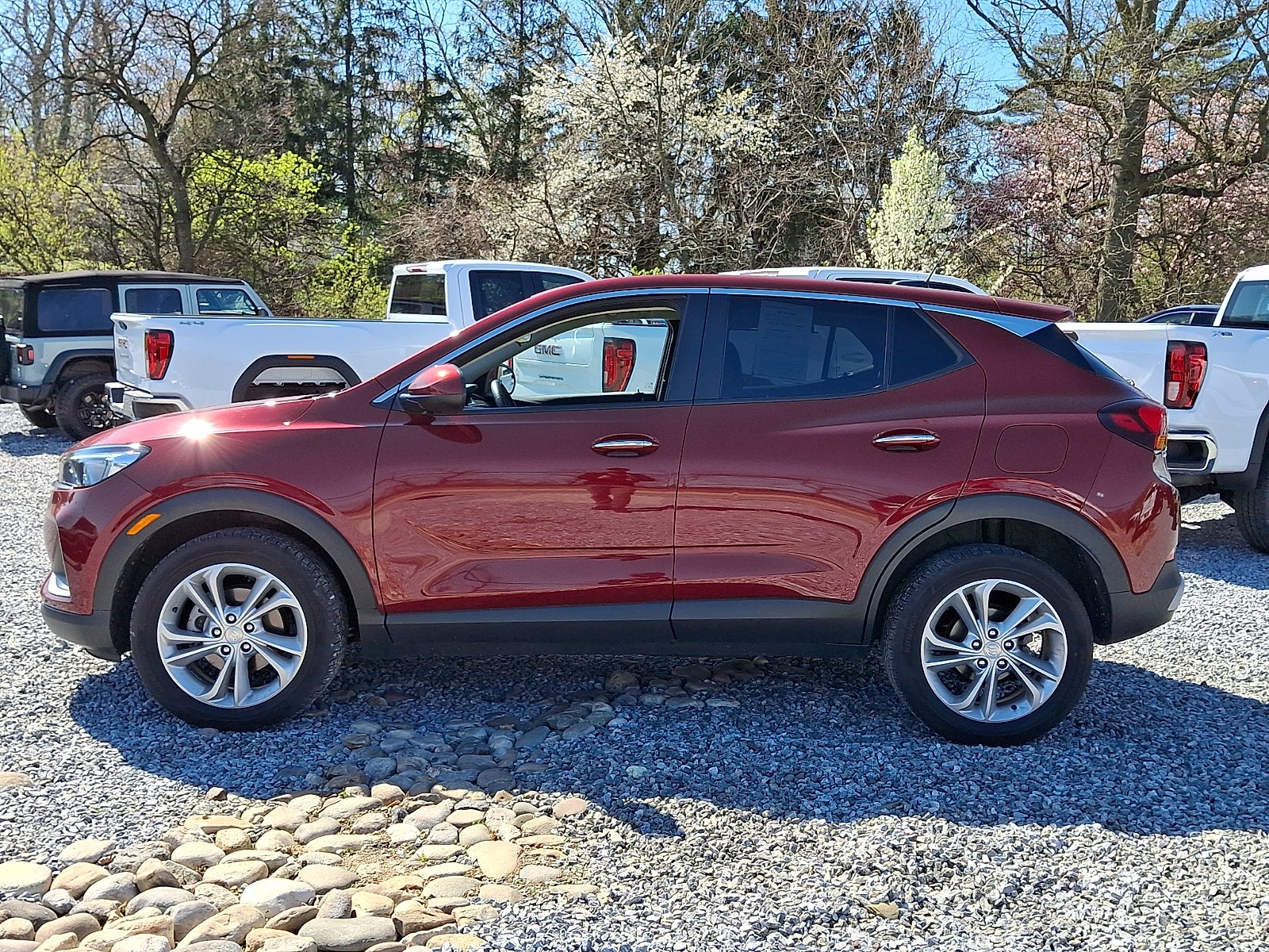 Introducing the 2023 Buick Encore GX AWD 4dr Preferred, a sophisticated compact SUV that seamlessly combines style, performance, and versatility. Dressed in an eye-catching Cinnabar Metallic exterior, this vehicle exudes a modern flair that is sure to turn heads. The luxurious ebony interior offers a comfortable and refined space, ensuring an enjoyable driving experience for both driver and passengers. Under the hood, the Encore GX is powered by an efficient Ecotec 1.3L Turbo I3 engine, delivering an impressive 155 horsepower and 174 lb-ft of torque. This engine is designed to provide spirited acceleration while maintaining excellent fuel efficiency, making it perfect for both city driving and weekend getaways. With all-wheel drive capability, the Encore GX offers enhanced traction and stability, giving you the confidence to tackle various road conditions with ease. The Preferred trim level comes equipped with a suite of advanced technology and safety features, designed to enhance your driving experience and keep you connected on the go. Don't miss your chance to experience the blend of elegance and performance that the 2023 Buick Encore GX offers. Visit us today to schedule a test drive!